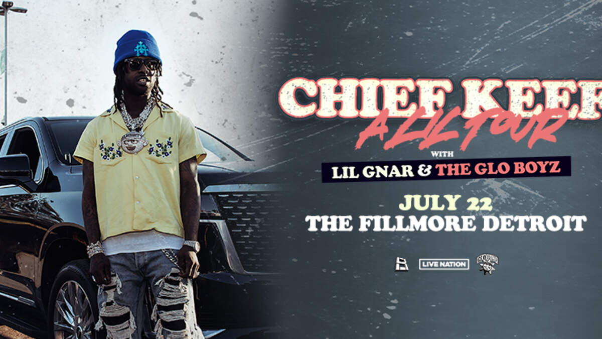 Chief Keef Support – Lil Gnar, The Glo Boyz Monday, July 22, 2024 The Fillmore Detroit Get Tickets Here: https://concerts.livenation.com/event/080060A6C6FF7804?utm_campaign=PRM-00271698&utm_source=wjlb-fm&utm_medium=ln_promo